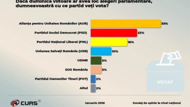 AUR conduce detașat în sondajul CURS din ianuarie 2026, iar majoritatea românilor cred că țara merge într-o direcție greșită